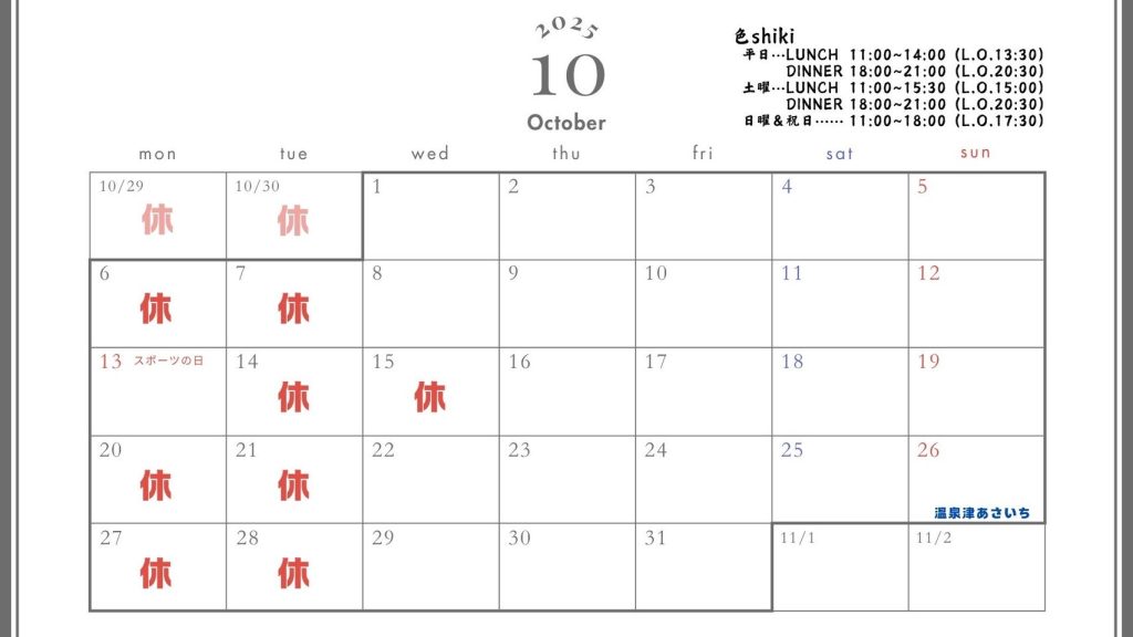営業時間 | 【ランチ】11:30〜14:00 【カフェ】14:00~16:00(土日祝) 【ディナー】18:00〜22:00 |