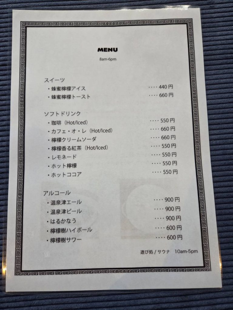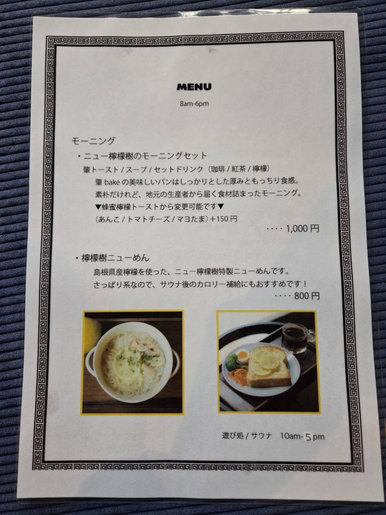| ニュー檸檬樹のメニューと施設 | 8:00~10:00.LO 13:00~17:00.LO |
