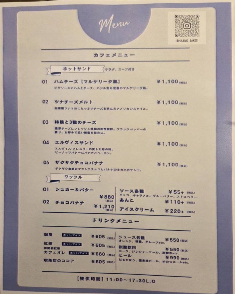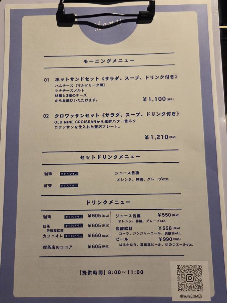 | 木曜日・日曜日:肇(Hajime)Bake&Cakes | モーニング 8:00~11:00 カフェ 11:00~17:30.LO |